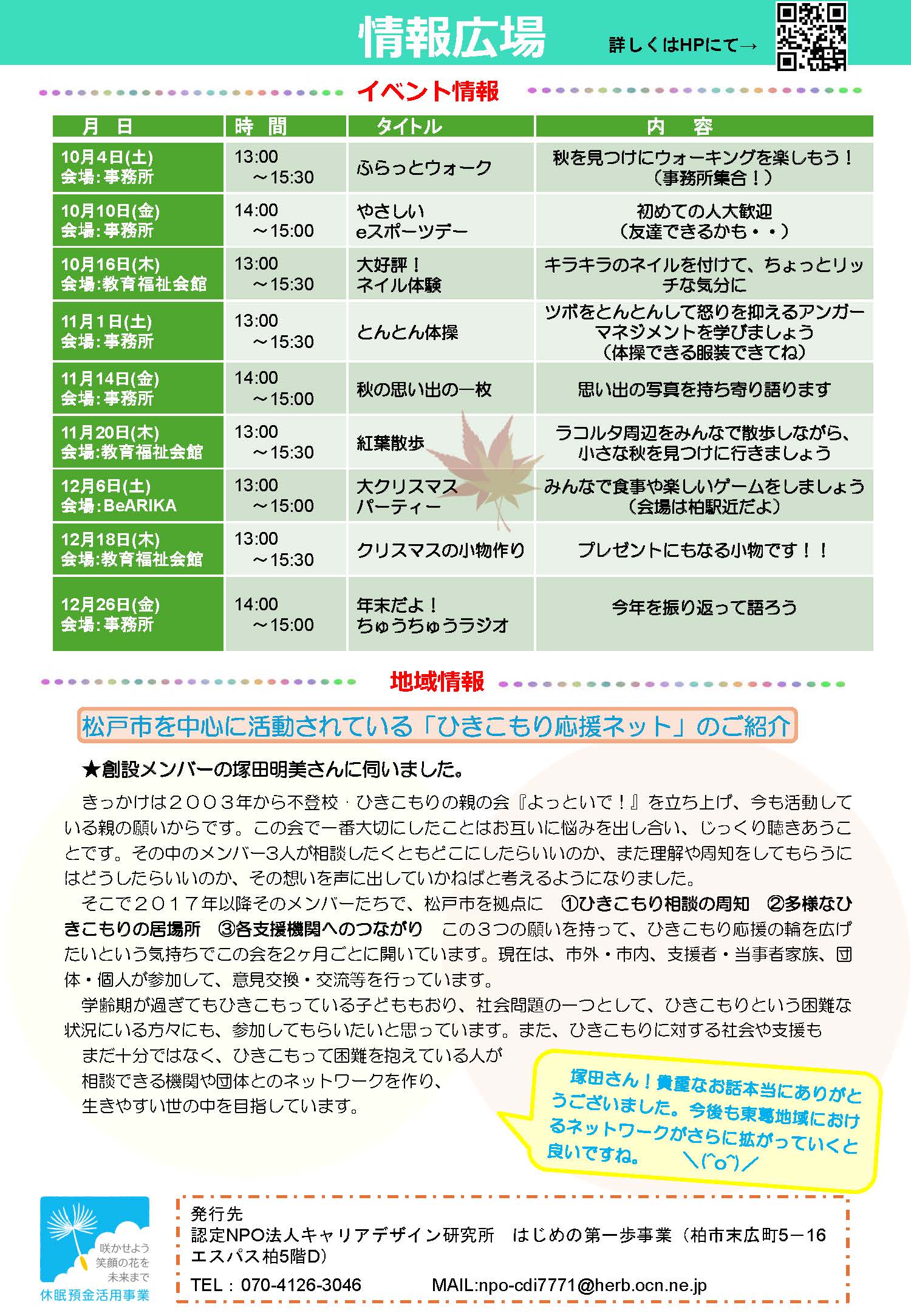 はじめの第一歩事業 10月のイベントカレンダーができました